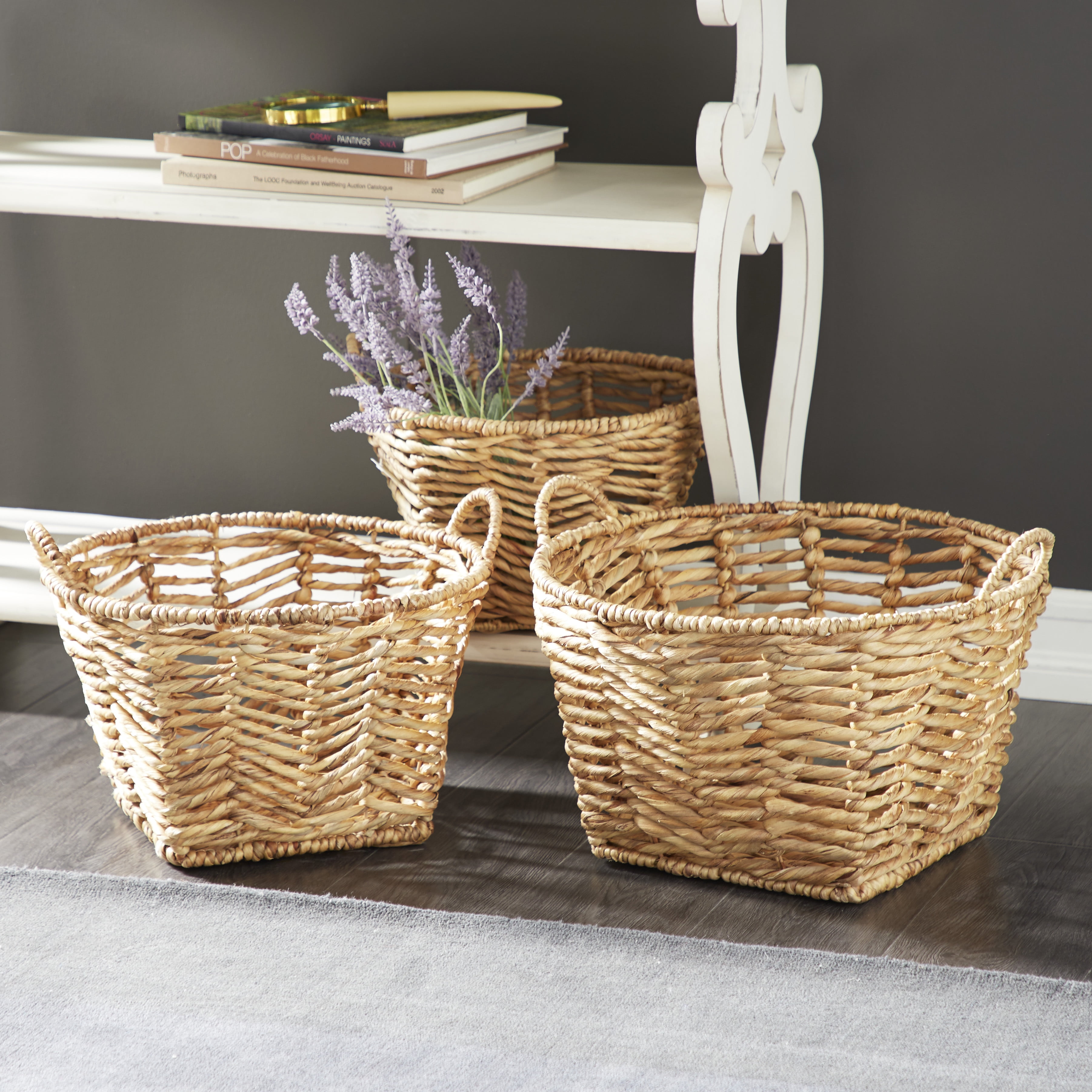 Decmode Large Square Hand Woven Water Hyacinth Wicker Baskets Set Of 3 17 X 12 15 X 12 13 X 11 Walmart Com